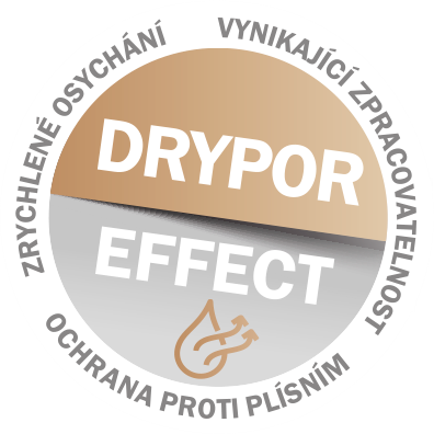 Hydrofilní vlastnost zajišťuje rovnoměrné rozprostření vlhkosti po povrchu, což urychluje osychání fasády po dešti nebo při mlze. Hydrofobní chování naopak odpuzuje vodu a podporuje její efektivní odvod při silnějším dešti. Výsledkem je rychlé schnutí fasády a vyšší odolnost vůči znečištění a biologickému napadení.