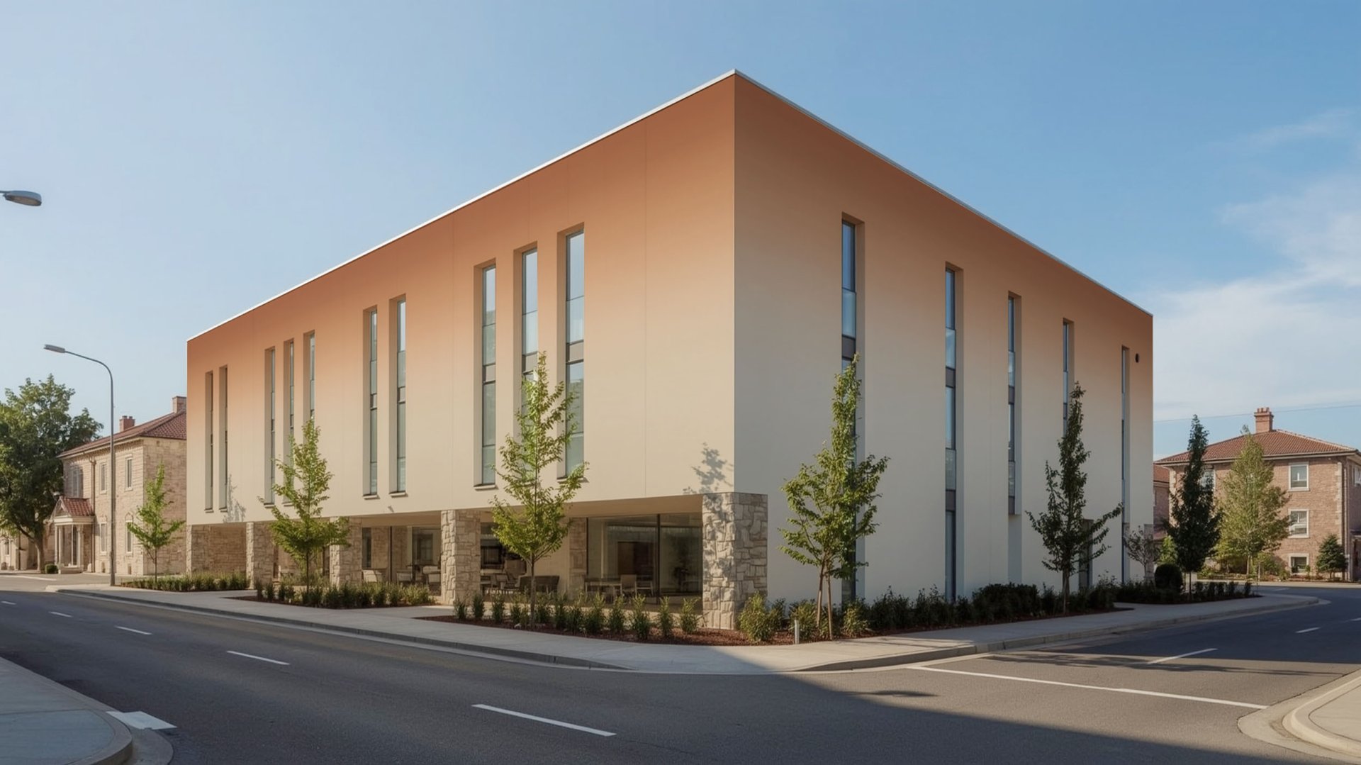 Barevné přechody vdechují fasádě hloubku a dynamiku