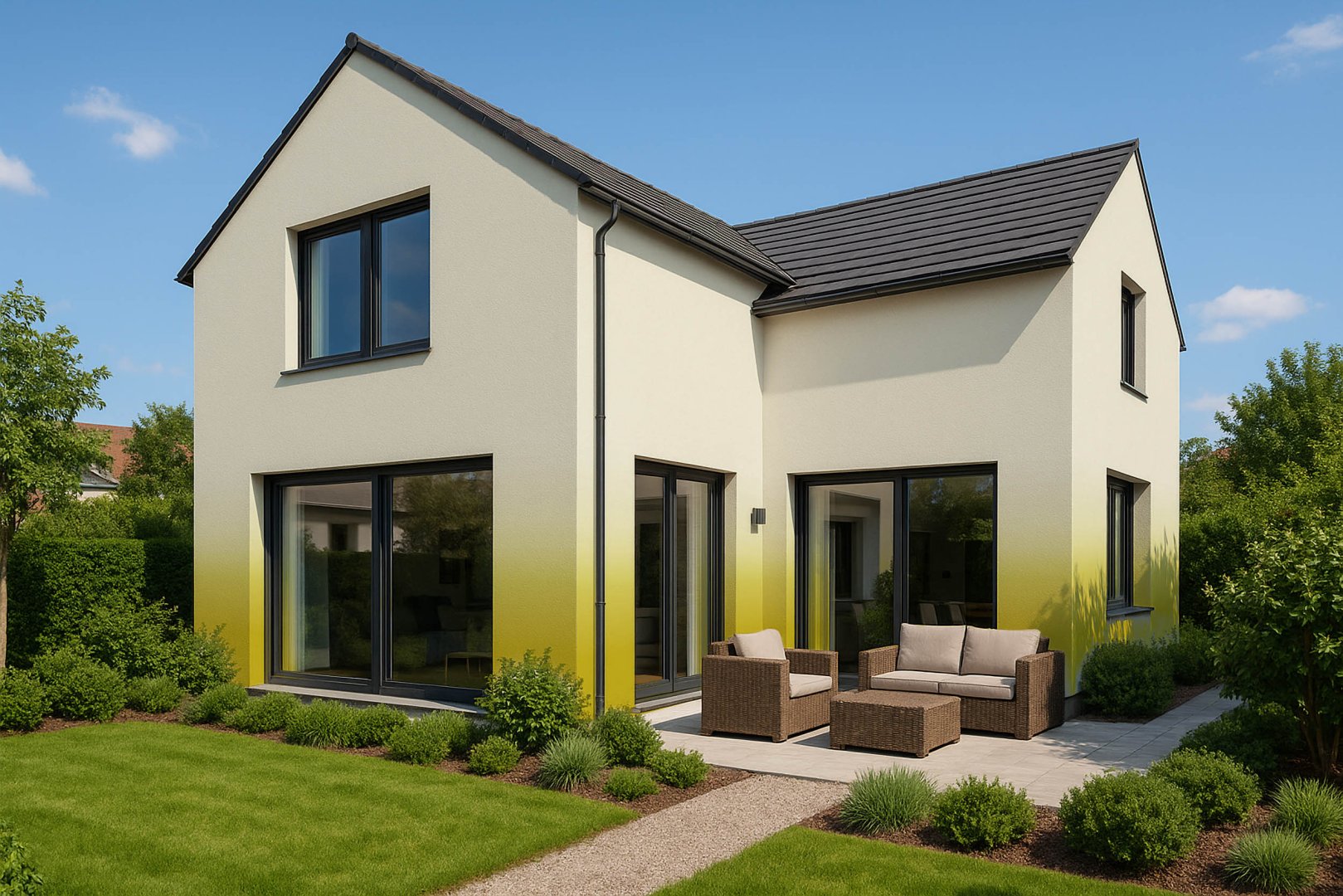 Technika ombré, někdy označovaná jako gradient, vytváří jemný přechod mezi tmavšími a světlejšími odstíny. Výsledkem je fasáda, která působí živě, dynamicky a mění se s denním světlem. Není to jen barva, je to i emoce a zážitek.