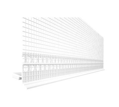 Ukončovací parapetní profil s nepřiznanou okapnicí pro tzv. podomítkovou montáž parapetů. Pěnová páska zajišťuje dilatujicí napojení omítky na koncovku parapetu a pro odvod vody z ostění zateplovacího systému.