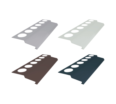 Přímý balkonový profil z lakovaného hliníku tloušťky 0,6 mm opatřený ochrannou fólií. Barva šedá RAL 7001.